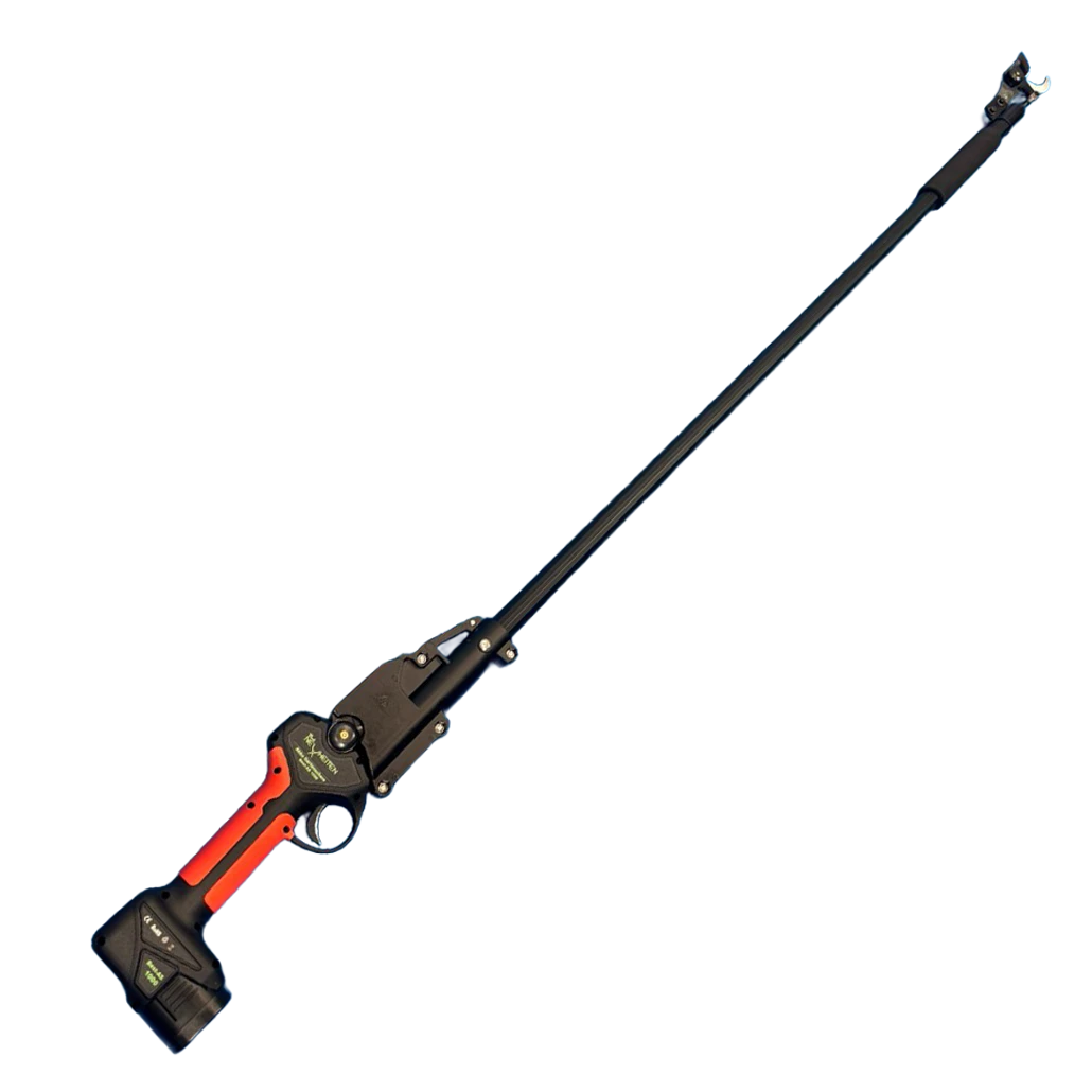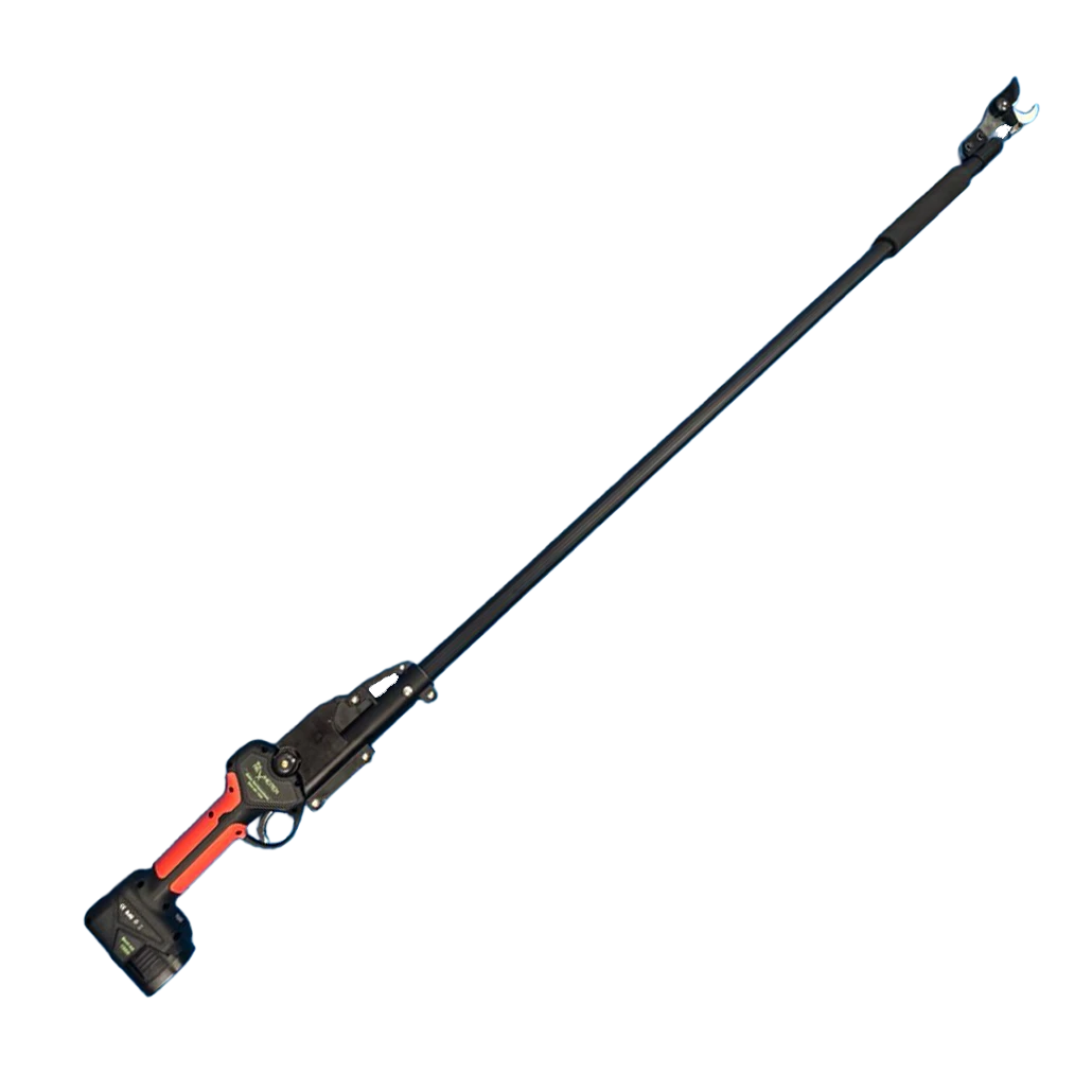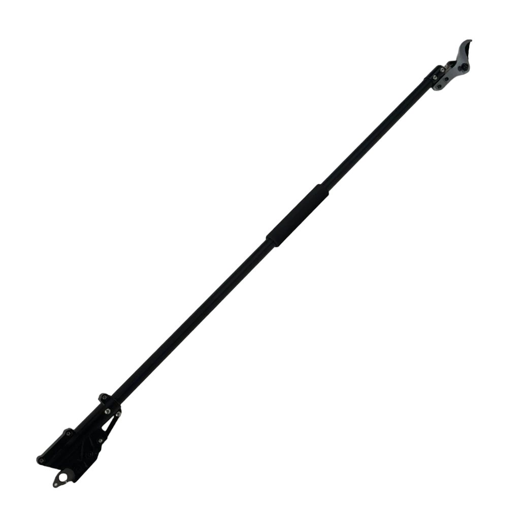 Sie kann ganz einfach auf die Akkuschere montiert werden ( siehe Montagevideo ). Die Verlängerung hat eine Gesamtlänge von 140 cm. So können Sie im Stand auch in der Höhe präzise Schnitte setzen. Der Schaumstroff-Griff an der Stange ist beweglich und lässt sich bequem verschieben. Dies ermöglicht es, die Schere zu drehen und an gewünschter Position zu schneiden.